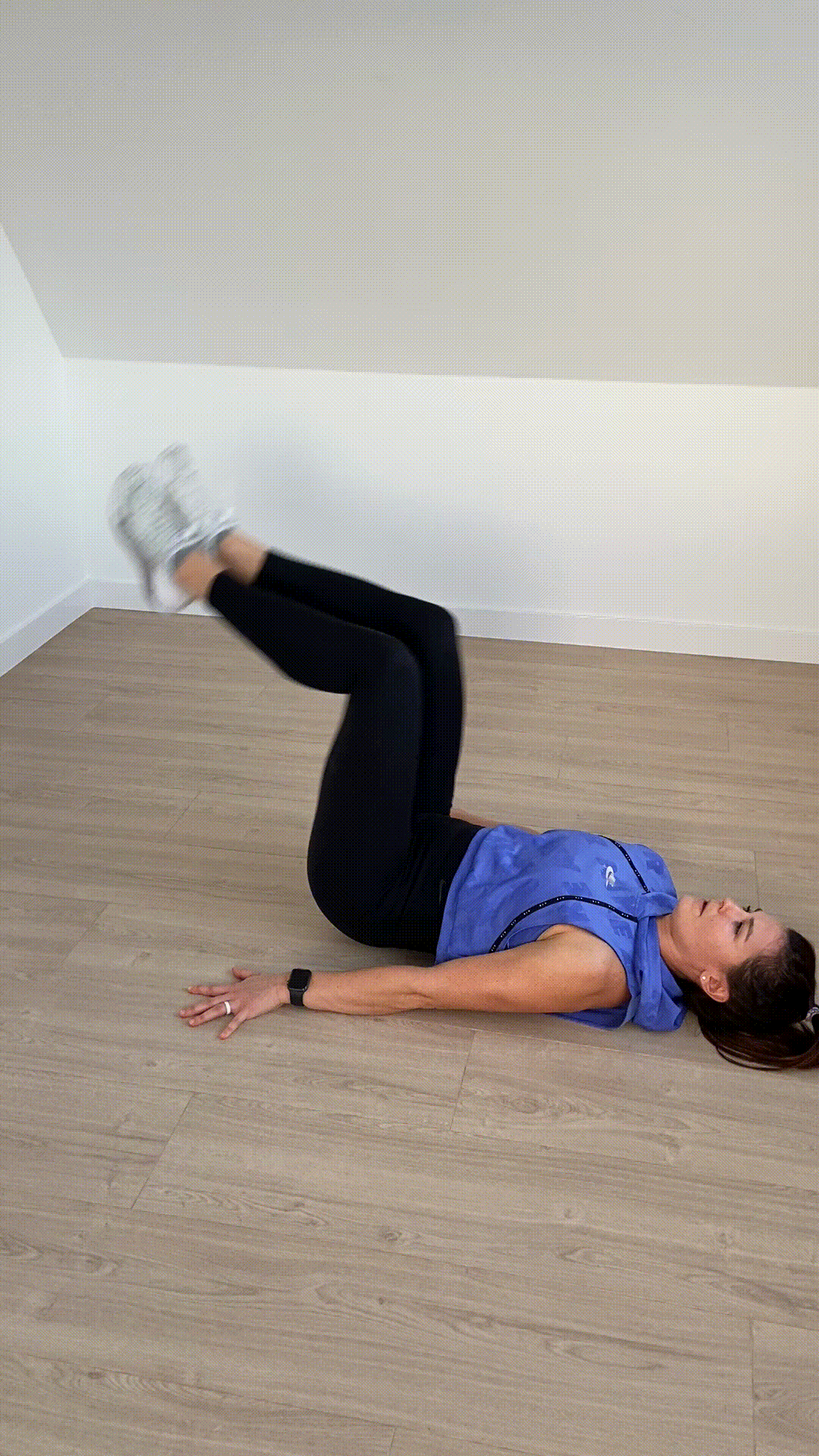 Contract your abs to pull your knees toward your chest and raise your hips off the floor.